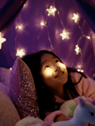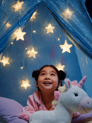 Las luces decorativas que incluimos de obsequio transforman la carpa en un verdadero mundo de fantasía.